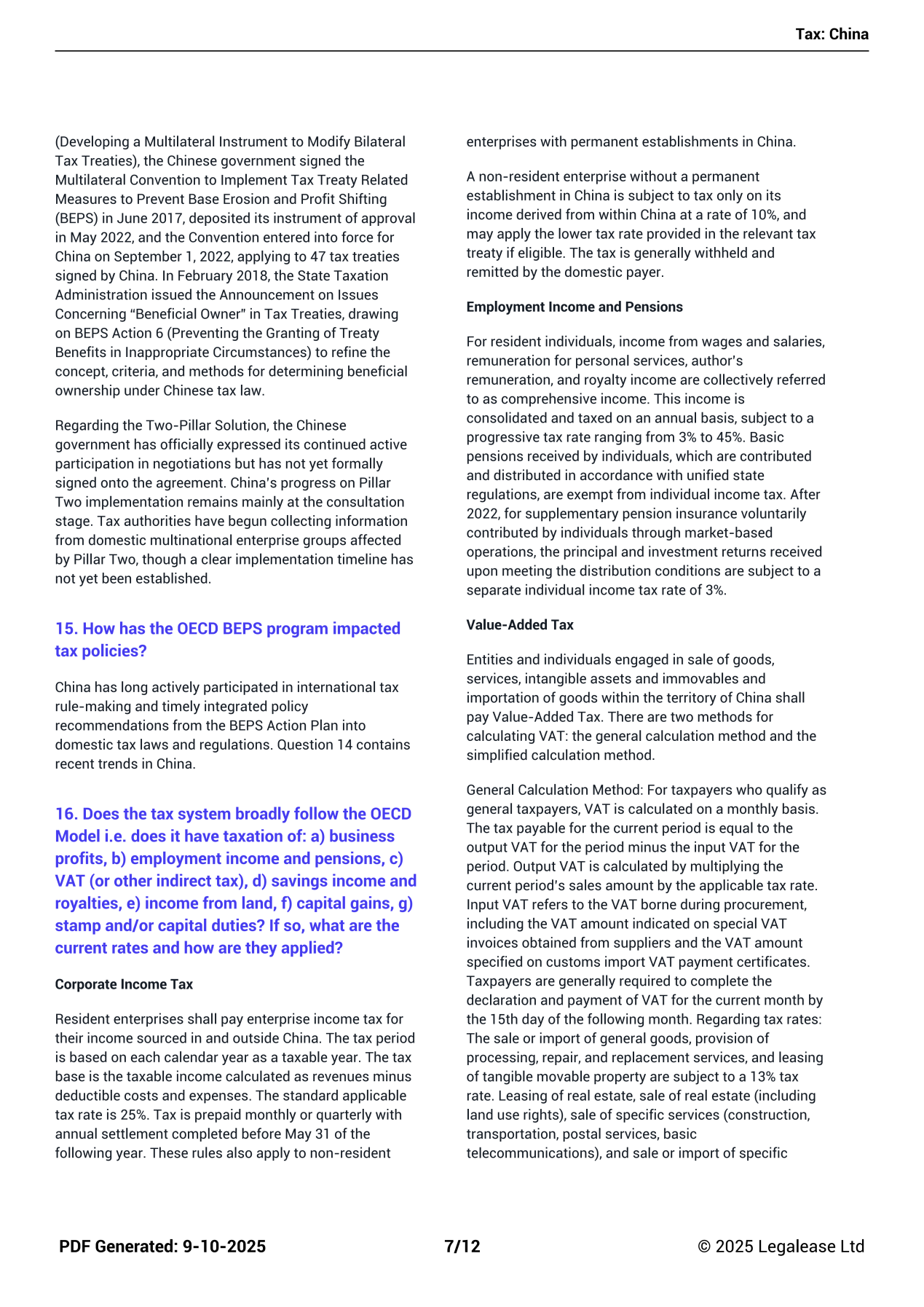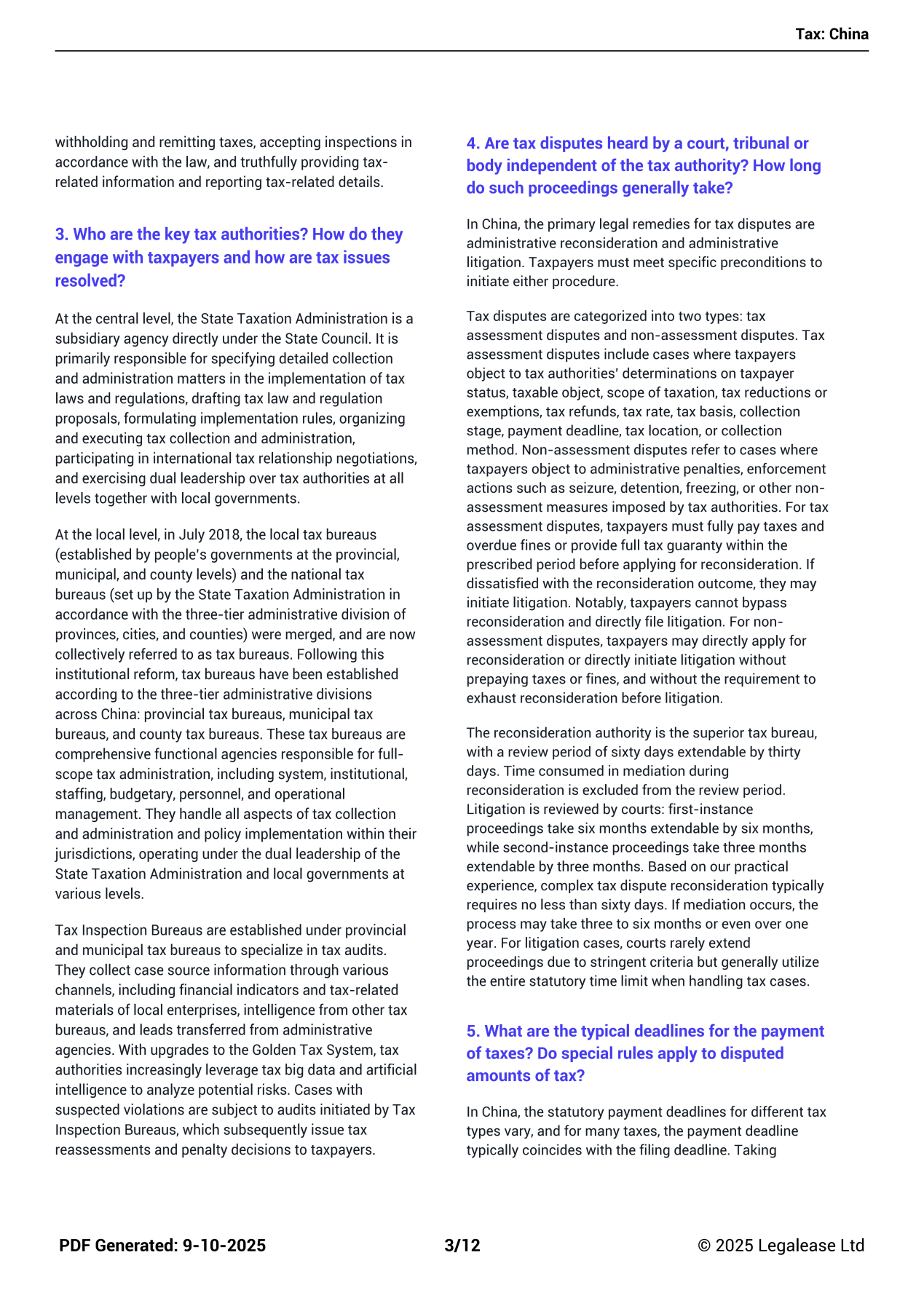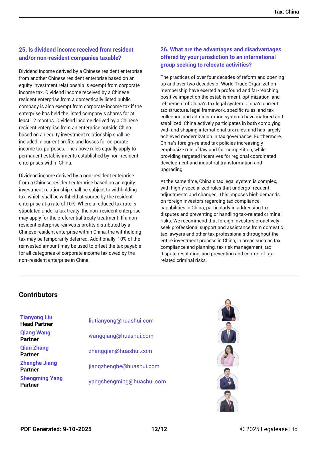 近日,华税律师团队受Legal500邀请撰写的《2025全球税务指南中国篇》(2025 Tax Comparative Guide China)在Legal500官方网站正式发布。《2025全球税务指南》由Legal500携手全球顶尖税务律师共同编撰,内容以问答形式展开,涵盖税收立法动态、税收征管体制、税收居民身份、预提税、反避税、BEPS行动计划与双支柱方案的实践情况等主要税法规则和实务指南,为各国企业法务人士提供包括中国、英国、法国、美国、德国、日本等重要司法管辖区的税法实务概览。华税律师事务所作为国内第一家专业化税法律师事务所,多年来成功代理了全国各地1000多件疑难税务争议案件,实现了企业价值的最大化,也得到了有关部门的高度认可,在业界独树一帜。