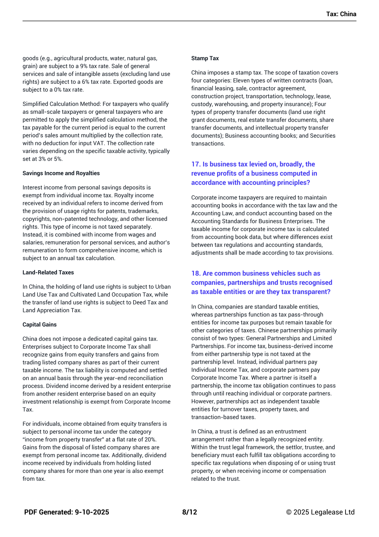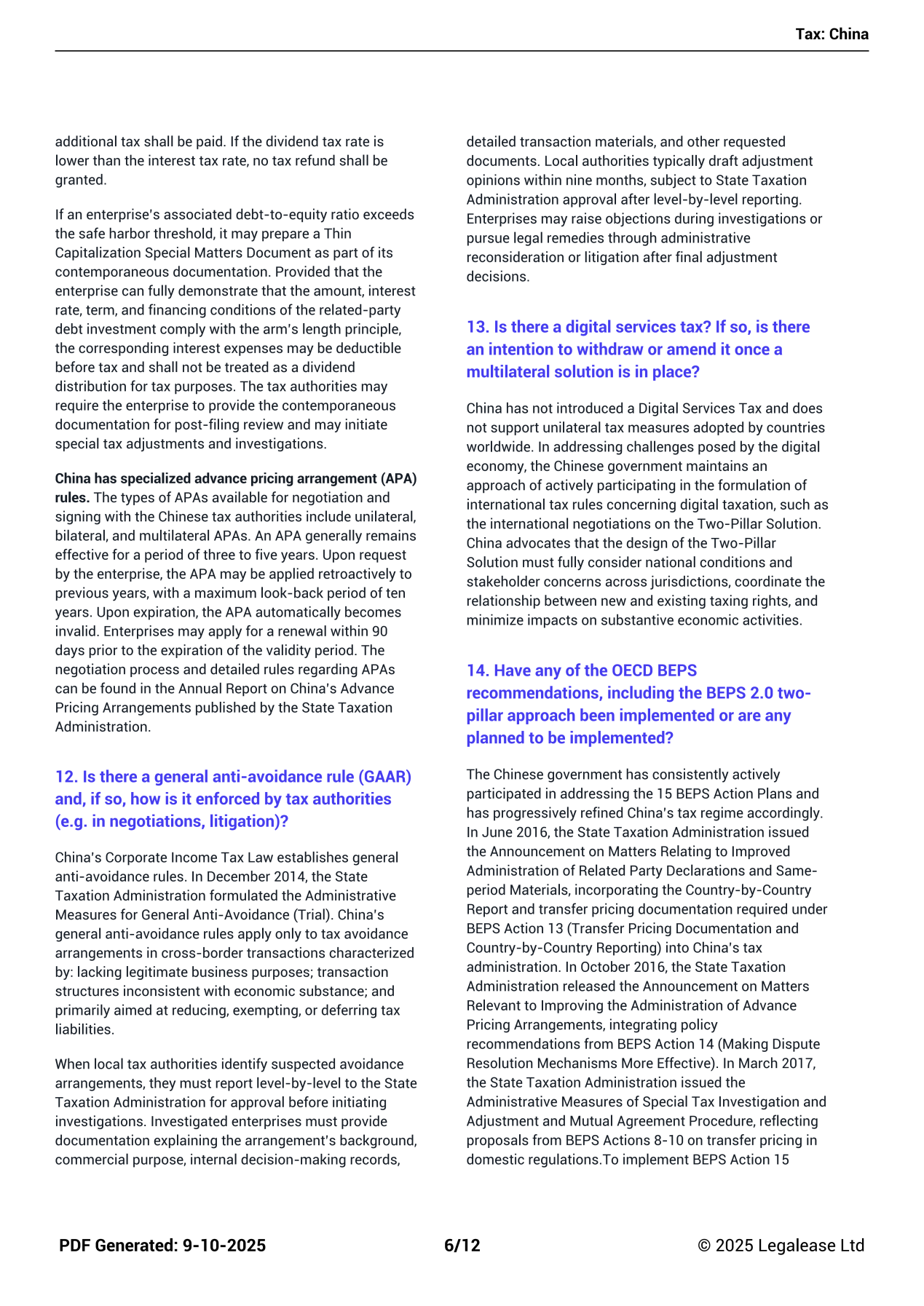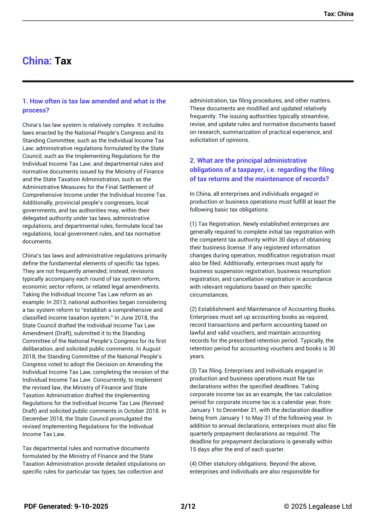 近日,华税律师团队受Legal500邀请撰写的《2025全球税务指南中国篇》(2025 Tax Comparative Guide China)在Legal500官方网站正式发布。《2025全球税务指南》由Legal500携手全球顶尖税务律师共同编撰,内容以问答形式展开,涵盖税收立法动态、税收征管体制、税收居民身份、预提税、反避税、BEPS行动计划与双支柱方案的实践情况等主要税法规则和实务指南,为各国企业法务人士提供包括中国、英国、法国、美国、德国、日本等重要司法管辖区的税法实务概览。华税律师事务所作为国内第一家专业化税法律师事务所,多年来成功代理了全国各地1000多件疑难税务争议案件,实现了企业价值的最大化,也得到了有关部门的高度认可,在业界独树一帜。
