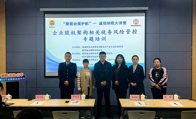 为深入贯彻第35个全国税收宣传月“税收・法治・公平”主题精神,持续推进“秦税合规护航”诚信纳税辅导品牌建设,4月22日,由国家税务总局西安高新技术产业开发区税务局与陕西省注册税务师协会(以下简称“陕西税协”)主办,陕西省注册税务师行业妇女联合会、西安高新区创业园发展中心协办,华税税务师事务所(陕西)有限公司承办的“企业股权架构相关税务风险管控”公益培训,在西安高新区创途众创园区举办。本次培训共有70余名税务师事务所业务骨干、企业财务负责人参加。