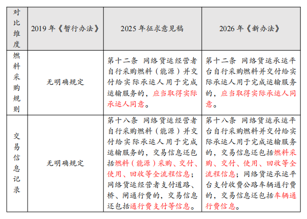 《新办法》对平台自行采购燃料、支付通行费的行为,细化了信息记录规则。这一修订需结合相关税收政策进行理解,其意图在于确保特殊税收政策在严格监管下落到实处,防止政策被滥用。