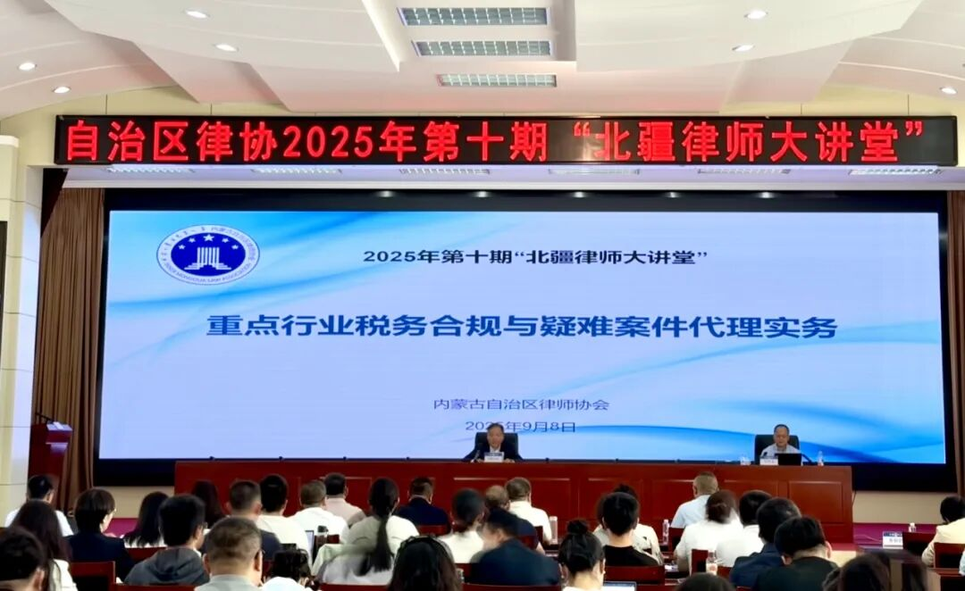 2025年9月8日下午,北京华税律师事务所刘天永律师、姜正和律师应内蒙古自治区律师协会邀请,在第十期“北疆律师大讲堂”中作《重点行业税务合规与疑难案件代理实务》专题授课。
