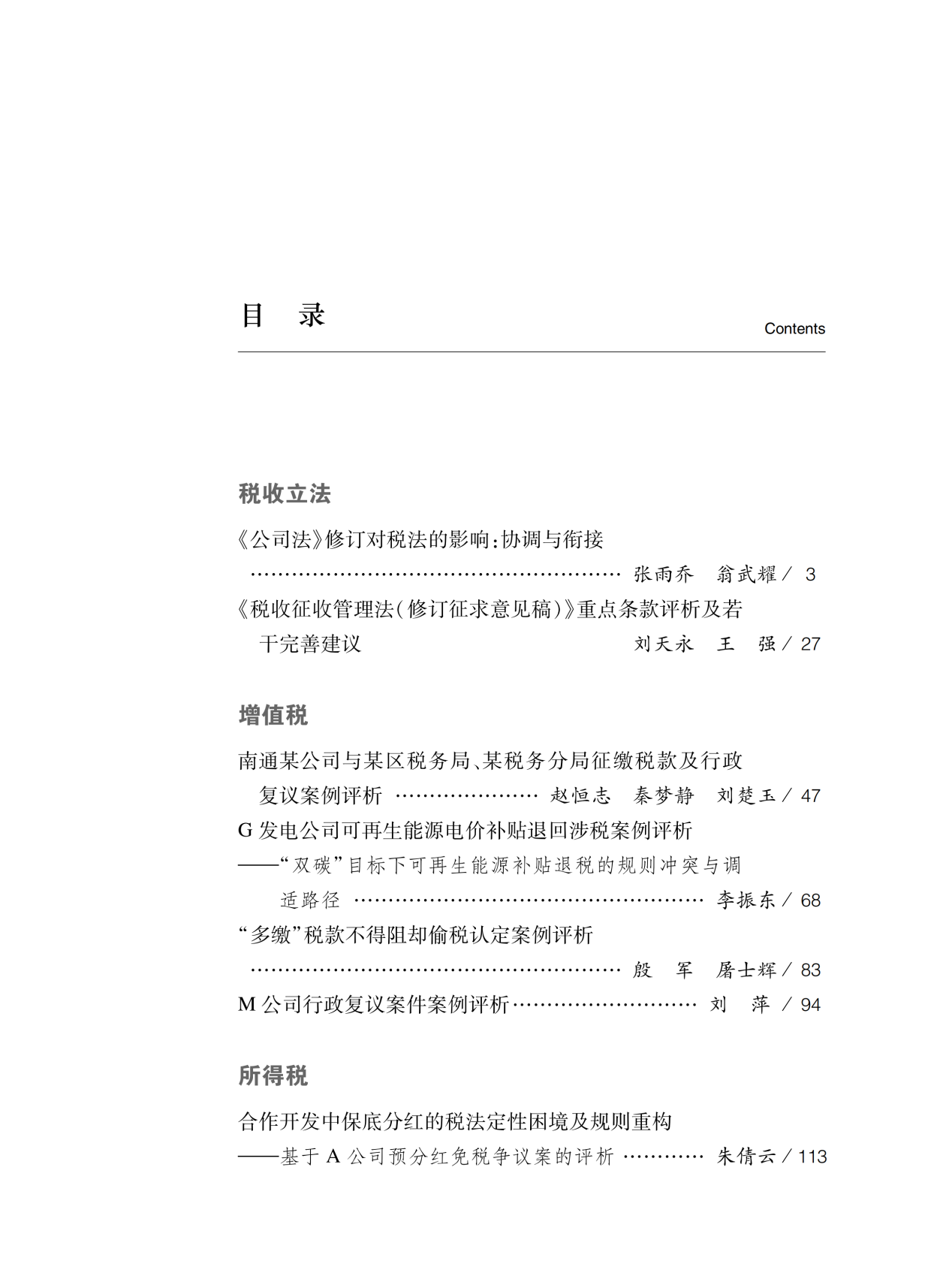 这些论文涵盖了不同行业领域的涉税典型案例,反映了当前税务律师业务领域遇到的部分典型问题和实务操作的成功经验。其中既对税收征管法修订等热点话题进行了探讨,也从增值税、企业所得税、土地增值税等多个税种的维度对典型疑难案例进行了富有创见的梳理与解析,同时亦对涉税刑事案件的关键争议点展开了实务探析。衷心希望本书能激励更多的优秀学子、青年律师投身税法服务领域,继续探索中国税收法治建设中的重大课题和前沿问题,聚力推进涉税专业服务创新与升级,为税收治理现代化和法治化建设贡献力量。
